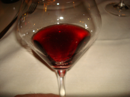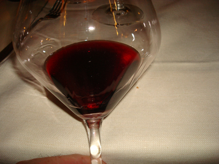 Above: Gianpaolo’s 2009 Morellino, which we tasted from cask, as we say in wine parlance, was aged in traditional large casks. Note how bright the wine is in the glass.