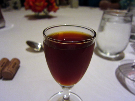 Sommelier Jonathan Hoenefenger paired the dish with Tony’s house white: a Nero d’Avola vinified as a white wine (Tony is Siculo-American). Frankly, I had never heard of such a thing (and neither had Italian Wine Guy when I asked him about this morning on my way back from Houston). In my experience, vanity bottlings like this rarely deliver more than novelty, but this wine was fresh, with bright acidity and minerality, and a surprising tannic note that found a worthy dance partner in the tender, meaty bits of urchin.