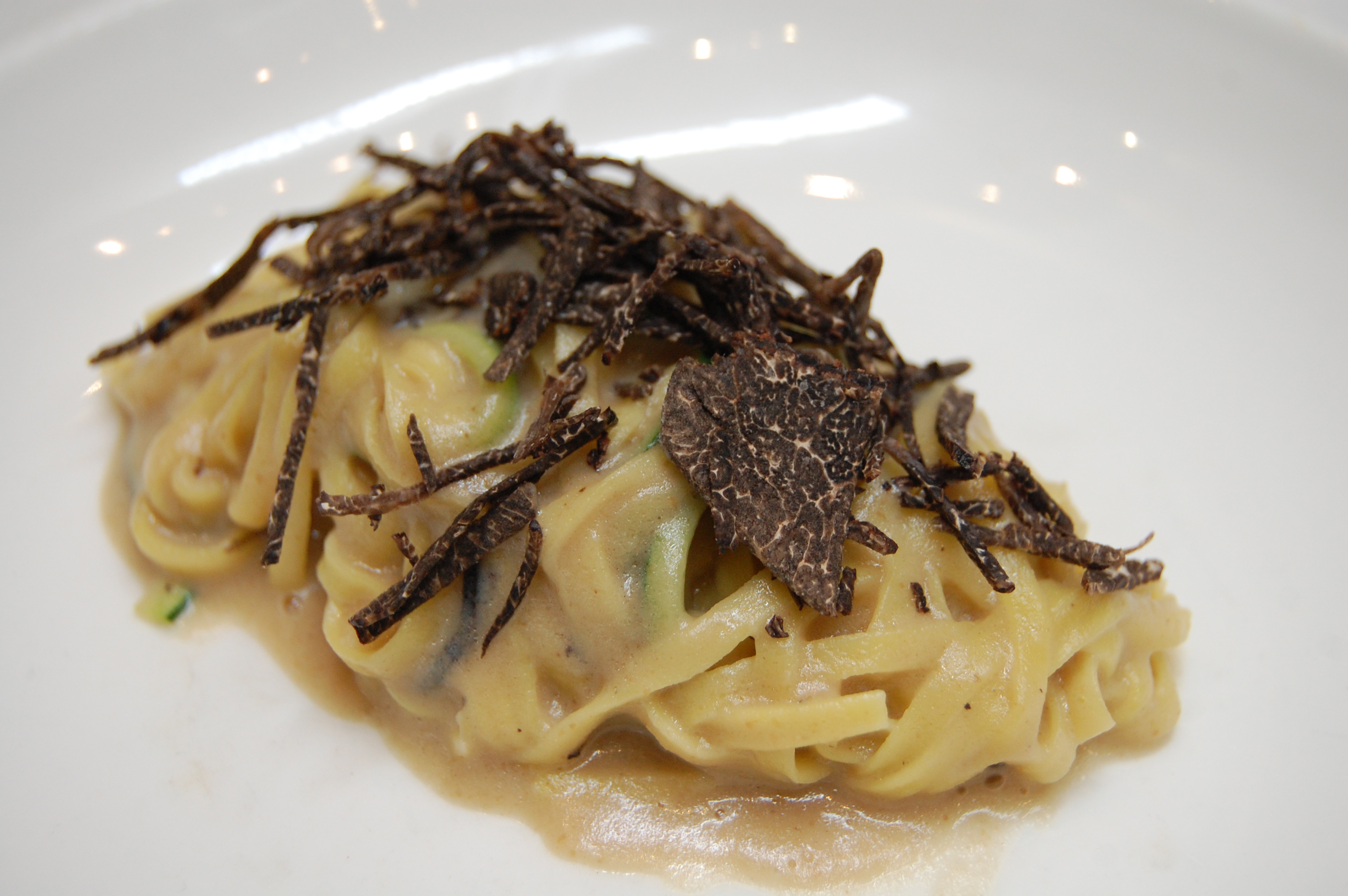 After our weekly meeting, Tony treated me to his housemade tagliolini tossed with sautéed eggplant and zucchine and then topped with shaved truffles.