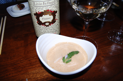Bruce suggested we pair the [Tocai] Friulano by Livio Felluga with a dish of uni, cuttlefish, and lemongrass (above). The minerality and grassy aromatic character of the wine worked gorgeously with Tyson’s creations. I’ll let the food do the talking…