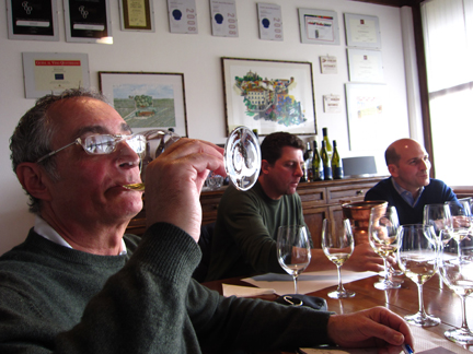 Above: Alfonso tasting with the COF2011 blogger team and winemaker Emilio del Medico and winery GM Dennis Lepore.