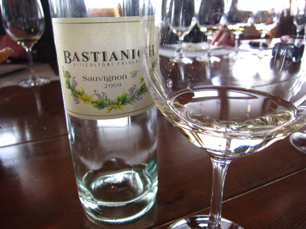 Above: In our tasting last week at the winery, my favorite wine was the 2009 Sauvignon Bianco. Fresh and clean, with balanced aromatic character and that bright acidity that I want (and need), it should retail for under $20 in the U.S. The Bastianich Sauvignon has a screw cap, a feature that allows the winemaker to add a smaller amount of sulfite to the wine, because the screw cap allows less oxidation (where a cork, an organic substance, would allow more).